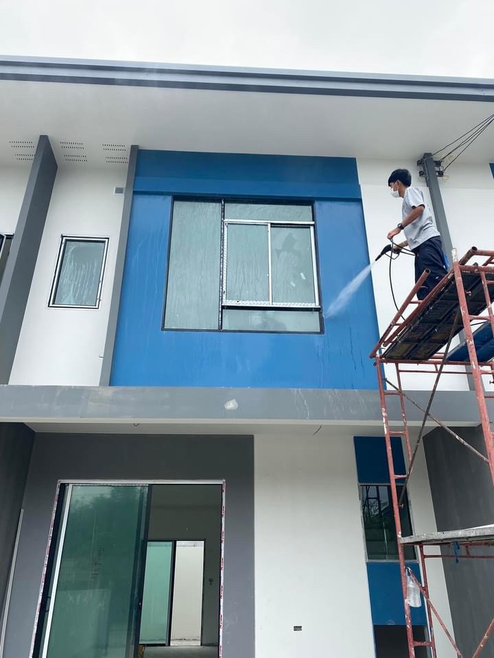 งานเช็ดทำความสะอาดกระจก ขอบเฟรม และทดสอบน้ำรั่วซึม